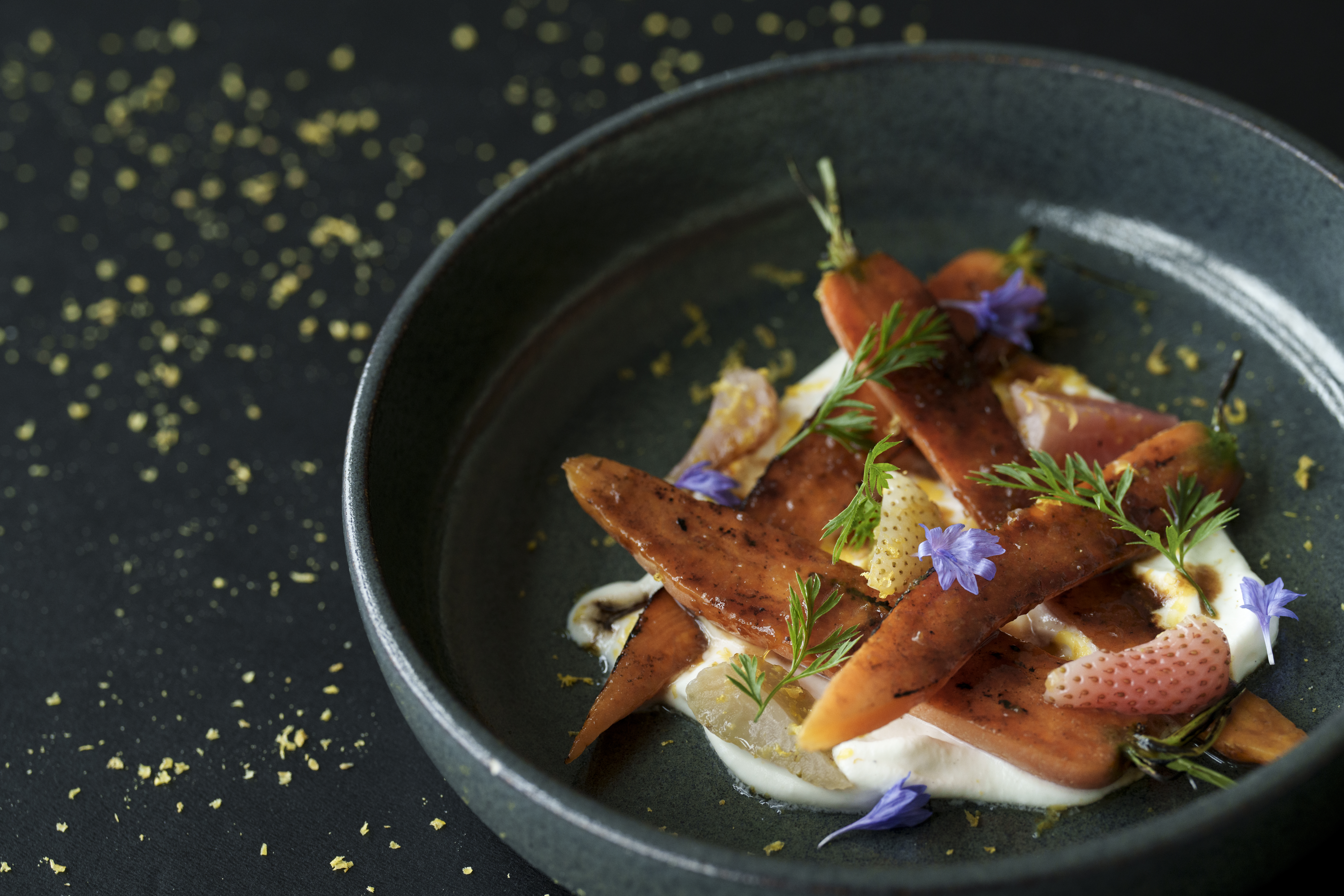 Det skyldes blandt andet, at vi fokuserer på at servere flere grønne og vegetariske forretter, og at ARoS' kokke har udskiftet størstedelen af det røde kød med grøntsager, fisk og kylling.